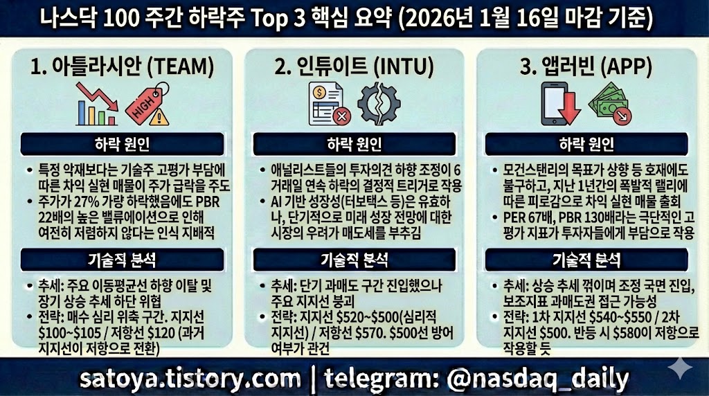 [나스닥 100 주간 하락주 Top 3] TEAM(아틀라시안), INTU(인튜이트), APP(앱러빈) - 고점 이후 조정, 기회인가 위기인가?