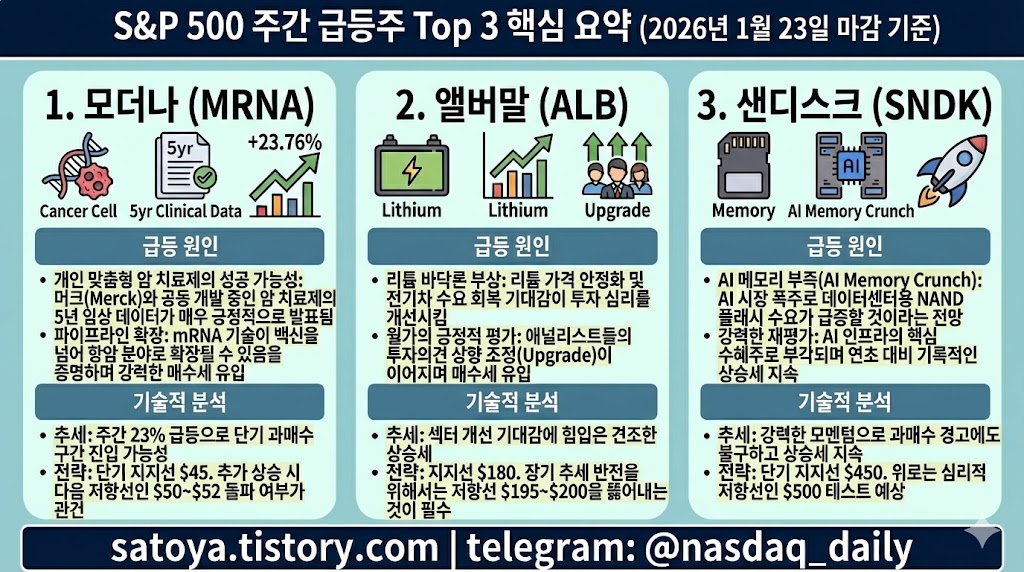 [S&P 500 주간 급등주 Top 3] MRNA(모더나), ALB(앨버말), SNDK(샌디스크) - 숨겨진 기회인가, 과열된 거품인가?