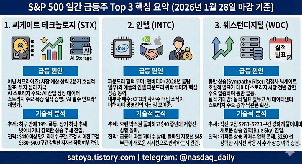 [S&P 500 일간 급등주 Top 3] STX(씨게이트), INTC(인텔), WDC(웨스턴디지털) - 급등의 배경과 전망은?