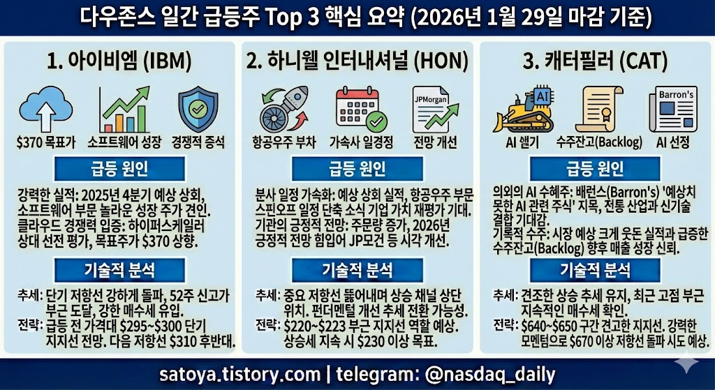 [다우존스 일간 급등주 Top 3] IBM(아이비엠), HON(하니웰), CAT(캐터필러) - 다음 상승 랠리를 주도할 주역은?